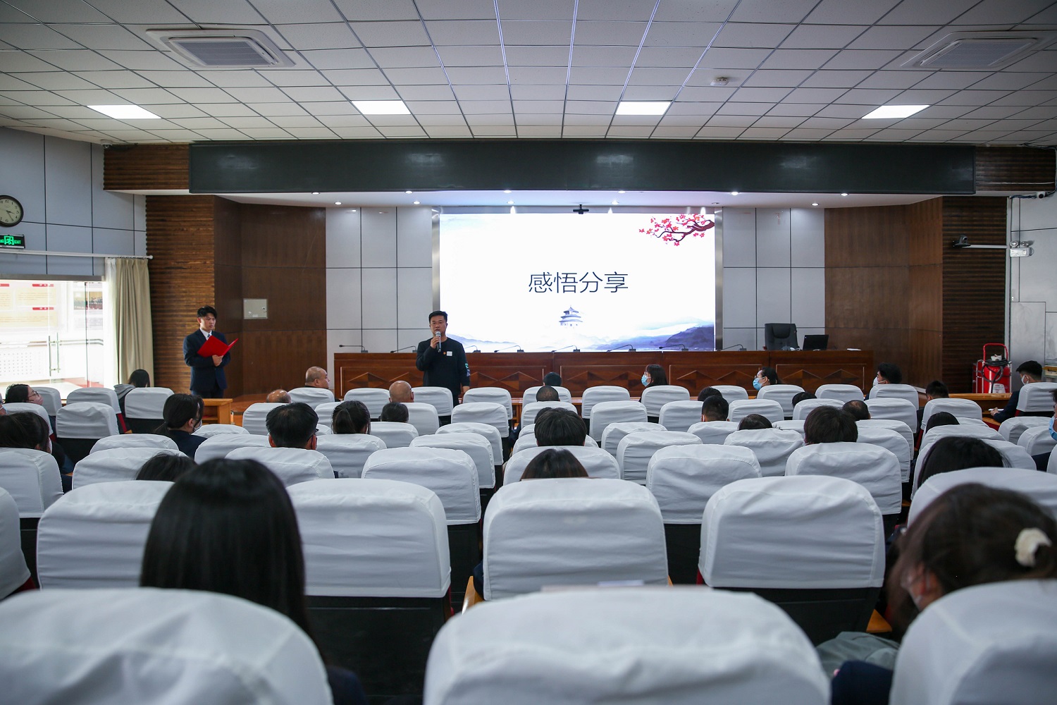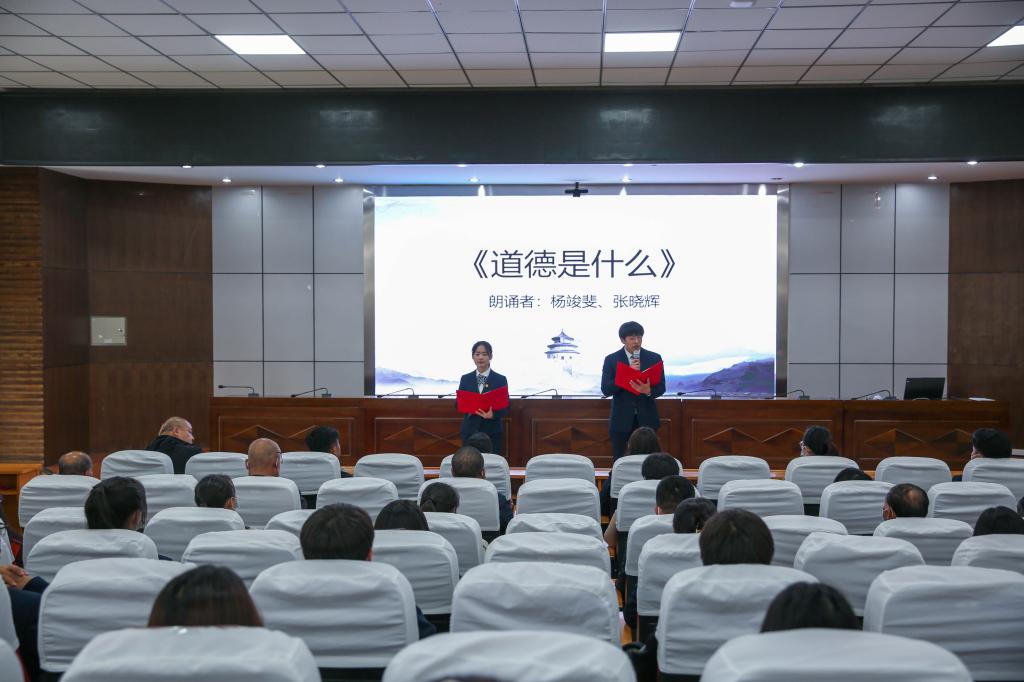 此次道德讲堂活动通过五个环节带领在场师生感受职业道德的魅力。活动由演讲《道德是什么》开始,引发学生进行自我反省,接着小合唱《奉献》让大家明白了只要立足本职,脚踏实地,乐于奉献,不懈努力,就能在平凡的岗位上干出不平凡的成绩来。