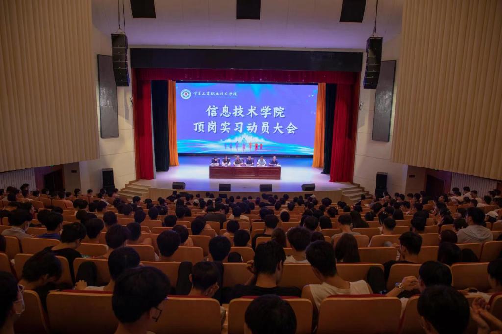 6月8日下午,信息技术学院2020级学生顶岗实习动员大会在小剧场隆重举行。学院643名待实习学生以饱满的精神参加了会议。陈志怀副校长、信息技术学院全体班子成员及学校招生就业处梁彩梅老师出席会议并讲话,会议由赵京丹副院长主持。