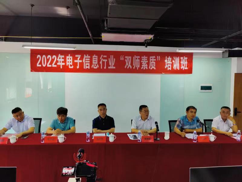 2022年6月27日,宁夏电子信息现代产业学院主办的电子行业“双师素质”培训班正式开班,本次培训得到了自治区教育厅、工业和信息化厅的大力支持,25名企业工程师和15名学校老师参加了培训;自治区教育厅二级调研员范占平、工业和信息化厅大数据与软件产业处四级调研员王有平,宁夏电子信息现代产业学院校方院长、宁夏工商职业技术学院校长关世春,产业学院企业方院长、宁夏云立方科技有限公司董事长梁明道等人参加了开班仪式,开班仪式由宁夏工商职业技术学院副校长陈志怀主持。