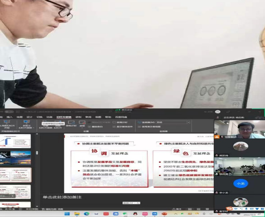 “9·20”疫情突袭,封校但不停教。马克思主义学院教师积极响应上级和学校有关疫情防控要求,居家教师线上教学,在校教师线下教学,齐心协力维护正常教学秩序和生活秩序。线上线下改变的只是教与学的形式,不变的是思政课教师的责任与担当。