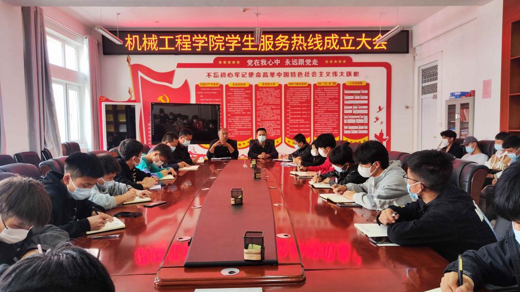 为深入推进“接诉即办”进班级,对学生诉求有一办一,做好学生思想引导和关心关爱,确保学生身心健康和校园安全。10月20日,机械工程学院召开学生服务热线成立大会,学院领导班子成员、团总支书记,在校24个班级班长参加会议。