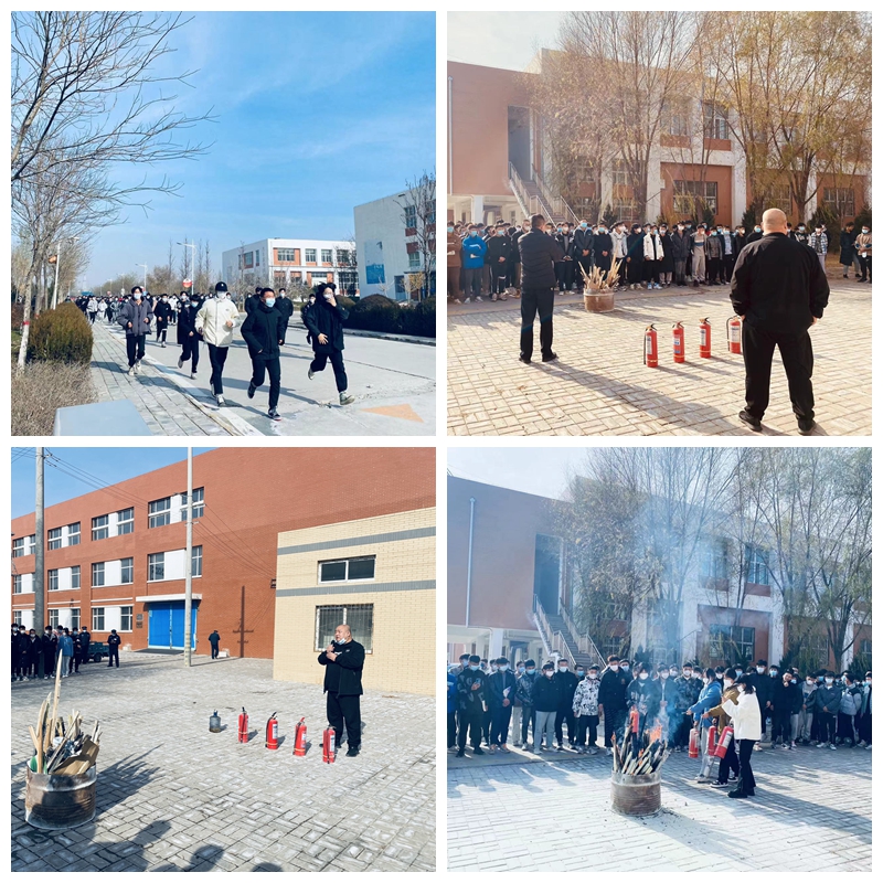 在疏散集合地点,机械学院王强老师对学生疏散集合情况进行了点评。随后信息学院党总支专职副书记任海涛为师生现场讲授了安全逃生的相关知识,演示了手提式干粉灭火器的正确使用方法。之后又选出若干学生,按照正确的灭火器操作方法,成功扑灭了正在猛烈燃烧的柴火。机械学院及信息学院的实训管理员、辅导员、专任教师等,也分别使用了干粉灭火器。