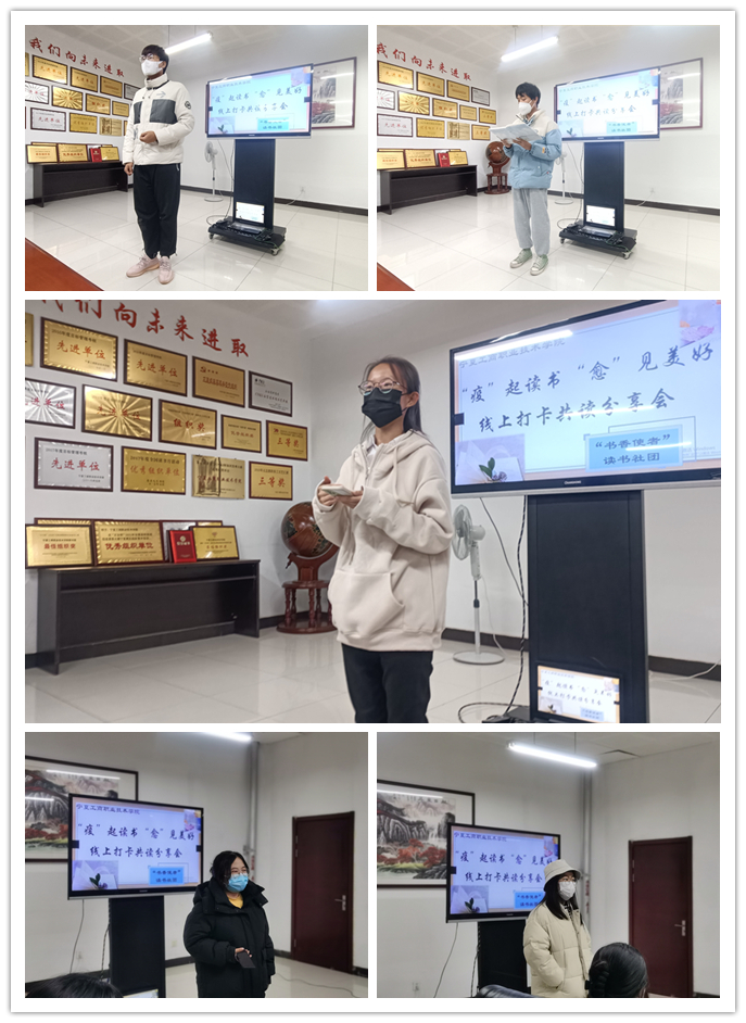 在2022年10月5日—10月19日打卡交流期间,参与者每隔三日将自己的姓名、读书名、已阅读页数以接龙形式发布在群内。除接龙外,还将读书感悟、读书笔记、段落摘抄、读书格言等拍成照片分享阅读心得。打卡结束后于11月19日开展了一场线下读书交流分享会,邀请5名优秀读者成为“讲书人”,现场分享推荐书目,交流阅读感想。通过读书分享,到场的读者们不仅领略到书籍的魅力,更汲取了思想和力量。分享环节结束后,指导老师为他们颁发了精美的奖品,鼓励同学们坚持梦想,突破难关,养成热爱书籍,博览群书的良好阅读习惯,为终身学习和健康发展奠定坚实基础,在日积月累中收获一个更好的自己。