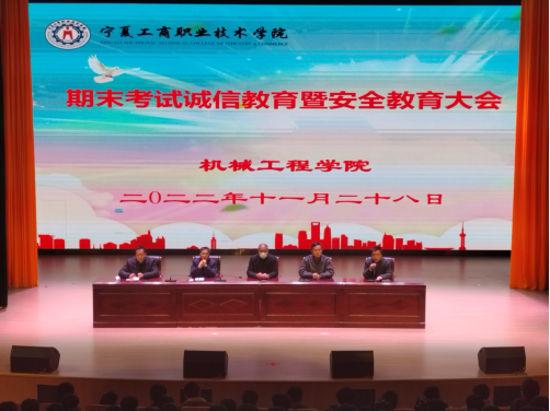 为进一步做好学校2022-2023学年第一学期期末考试学生诚信教育以及安全教育,11月28日,机械工程学院在大学生活动中心分批次组织召开了学生大会。机械工程学院党总支书记庞鸿斌、副院长马慧斌、副书记买学斌、学办主任、学工秘书、专兼职辅导员以及全体在校学生参加了会议。