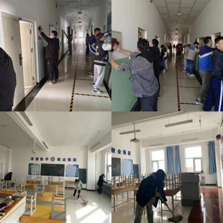 一部分学生以楼宇为单位,擦拭校内所有的牌匾,并负责捡拾楼宇内外所有地面垃圾。