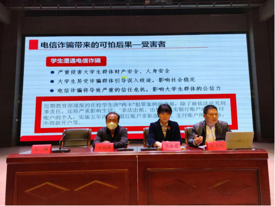 为落实学院春季学期“开学第一课”主题教育活动实施方案,规范学生日常行为教育,普及防诈骗知识,3月6日晚,中职部召开学生大会暨防范电信网络诈骗专题讲座。会议由中职部党总支副书记祖月明主持,主任吴金霞、副主任王向军、马腾和全体学生参加了会议。