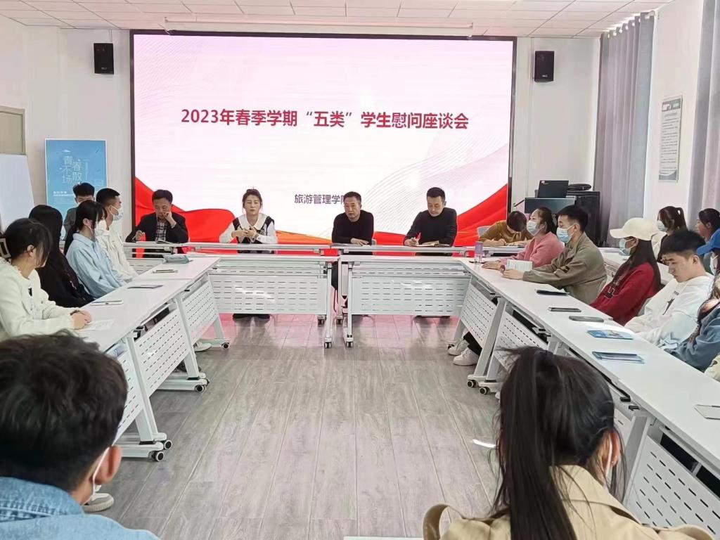 为扎实做好旅游管理学院资助“五类”学生工作,进一步了解同学们的学习生活及思想状况,3月9日下午,旅游管理学院在7号教学楼404室召开了2023年春季学期资助“五类”学生慰问座谈会。学院党总支副书记杨君社、学生处资助专干尹春媛、全体辅导员以及学院50余名“五类”困难学生代表参加了座谈会,学工办主任李振宇主持会议。