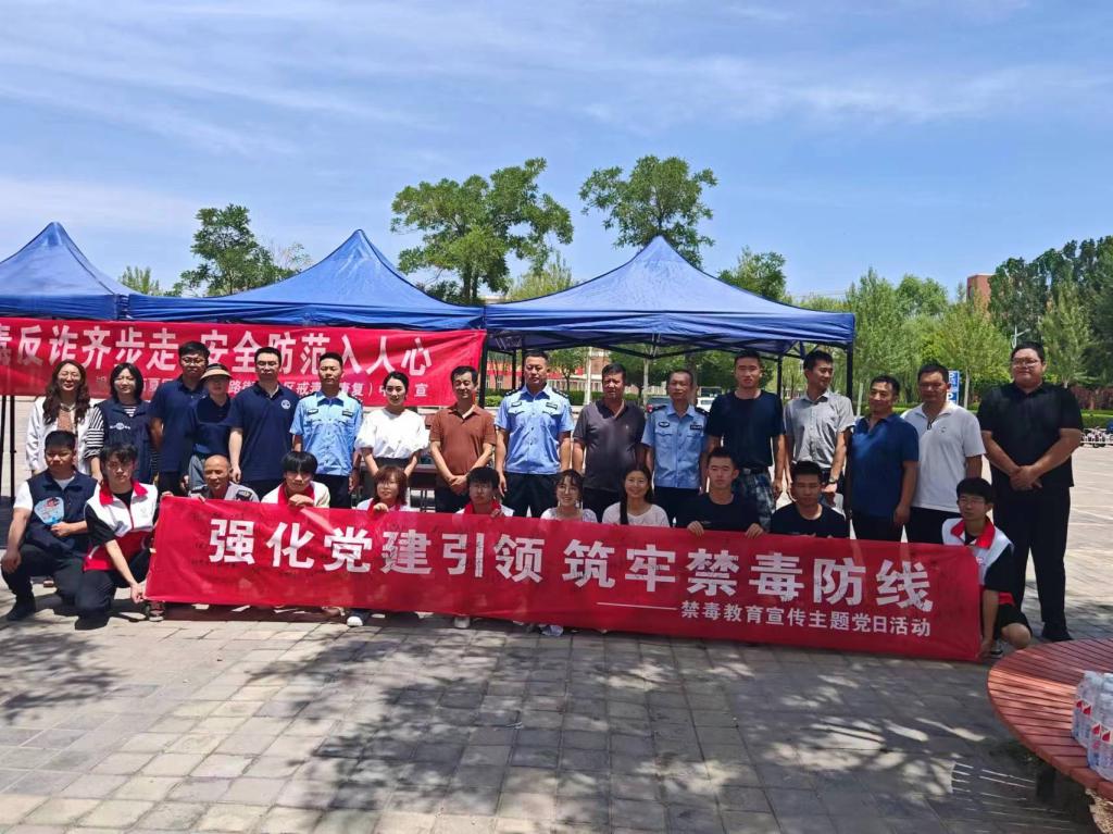 为进一步深化禁毒宣传教育工作,宣传毒品对人类的危害,提高师生识毒、拒毒、防毒和禁毒意识,充分发挥学院教育的主渠道和社会辐射作用,加大对学生的预防教育和宣传工作的力度,在第37个“6•26”国际禁毒日来临之际,6月27日中午,在大食堂门口,学院保卫处、创新创业学院联合党支部、团委、图书馆联合党支部与西夏区禁毒办、西夏区公安分局缉毒大队一起开展了一次“强化党建引领,筑牢禁毒防线”为主题的禁毒宣传教育主题党日活动。